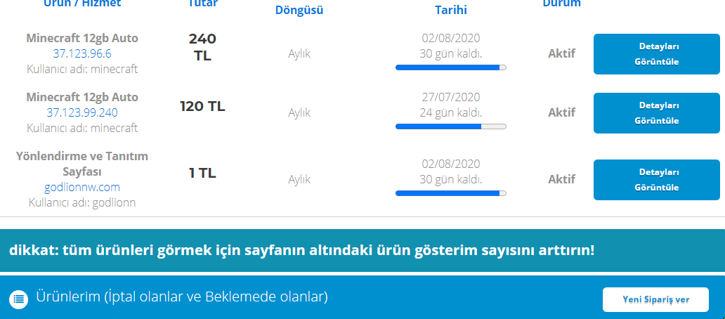 batihost.com üzerinden aldığınız hosting'e ait bilgiler.